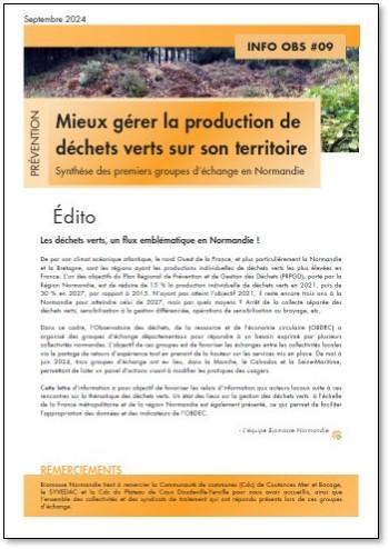 Dans ce cadre, l’Observatoire des déchets, de la ressource et de l’économie circulaire (OBDEC) a organisé des groupes d’échange départementaux pour répondre à un besoin exprimé par plusieurs collectivités normandes. L’objectif de ces groupes est de favoriser les échanges entre les collectivités locales via le partage de retours d’expérience tout en prenant de la hauteur sur les services mis en place. De maià juin 2024, trois groupes d’échange ont eu lieu, dans la Manche, le Calvados et la Seine-Maritime, permettant de lister un panel d’actions visant à modifier les pratiques des usagers. Cette lettre d’information a pour objectif de favoriser les relais d’information aux acteurs locaux suite à ces rencontres sur la thématique des déchets verts. Un état des lieux sur la gestion des déchets verts à l’échelle de la France métropolitaine et de la région Normandie est également présenté, ce qui permet de faciliter l’appropriation des données et des indicateurs de l’OBDEC.